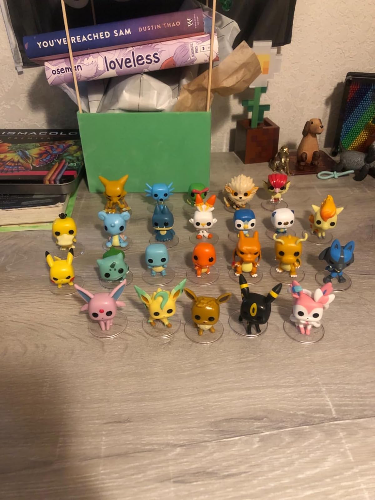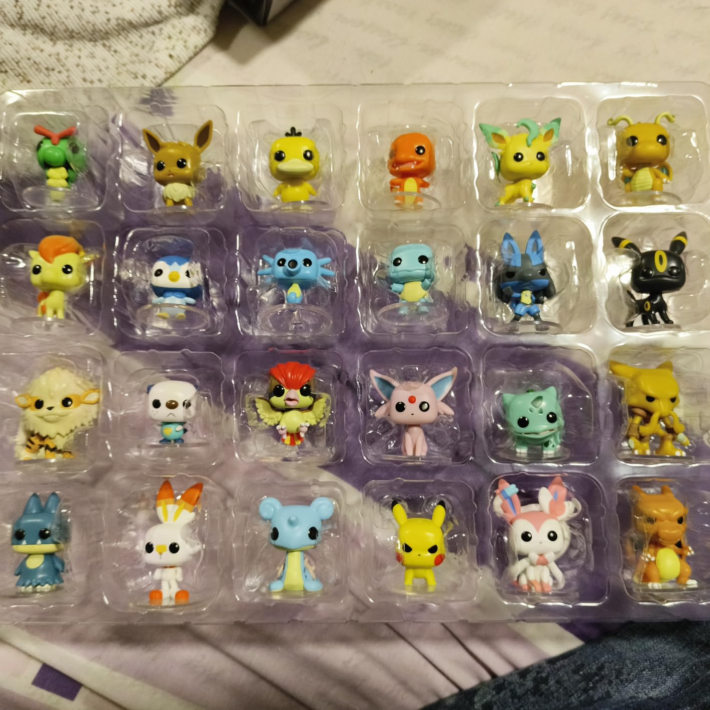 Really cute, a lot of different Pokémon, each have a clear stand, and you can put them on the box itself as a display. The only thing I have to say is getting some of them out was a challenge.